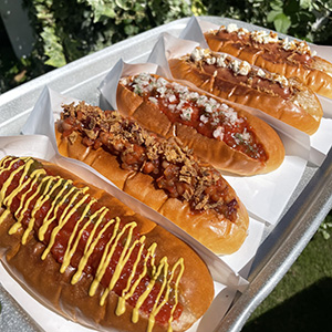 数種類のオリジナルソースのホットドックをメインにさっぱりするソーダ系のドリンクやコーヒー系のドリンクをご用意しています。