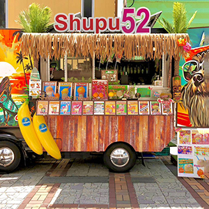 真岡市産のブランドいちごスカイベリーをまるごとけずった「けずりいちご」、いちごったぷりのクレープ、いちごでデコレーションされたキッチンカーでお届けします。